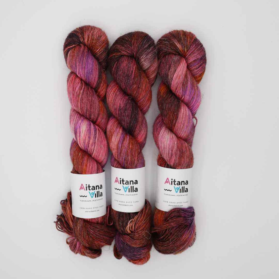 Cada madeja de Amelia se tiñe a mano en lotes pequeños de 2 a 4 unidades, lo que la convierte en una pieza única.