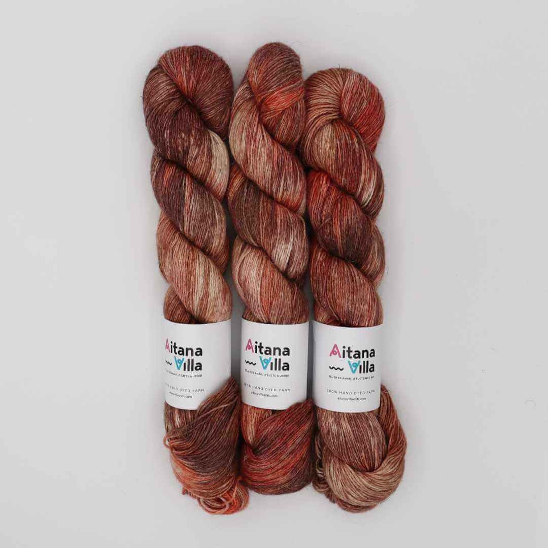 Cada madeja de Amelia se tiñe a mano en lotes pequeños de 2 a 4 unidades, lo que la convierte en una pieza única.