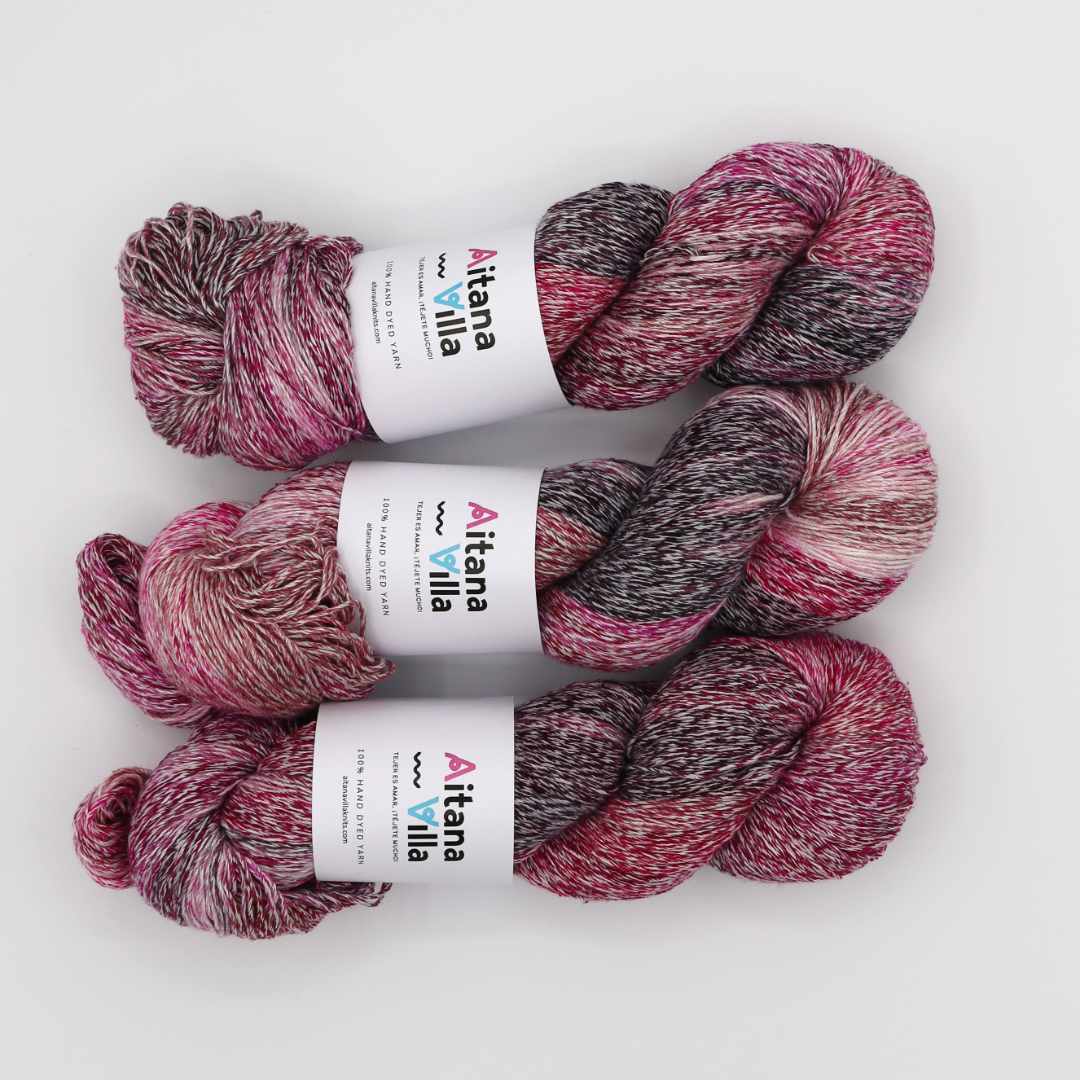Henrietta se tiñe a mano en lotes pequeños de 2 a 4 madejas. Cada una es única y puede presentar ligeras variaciones de color.