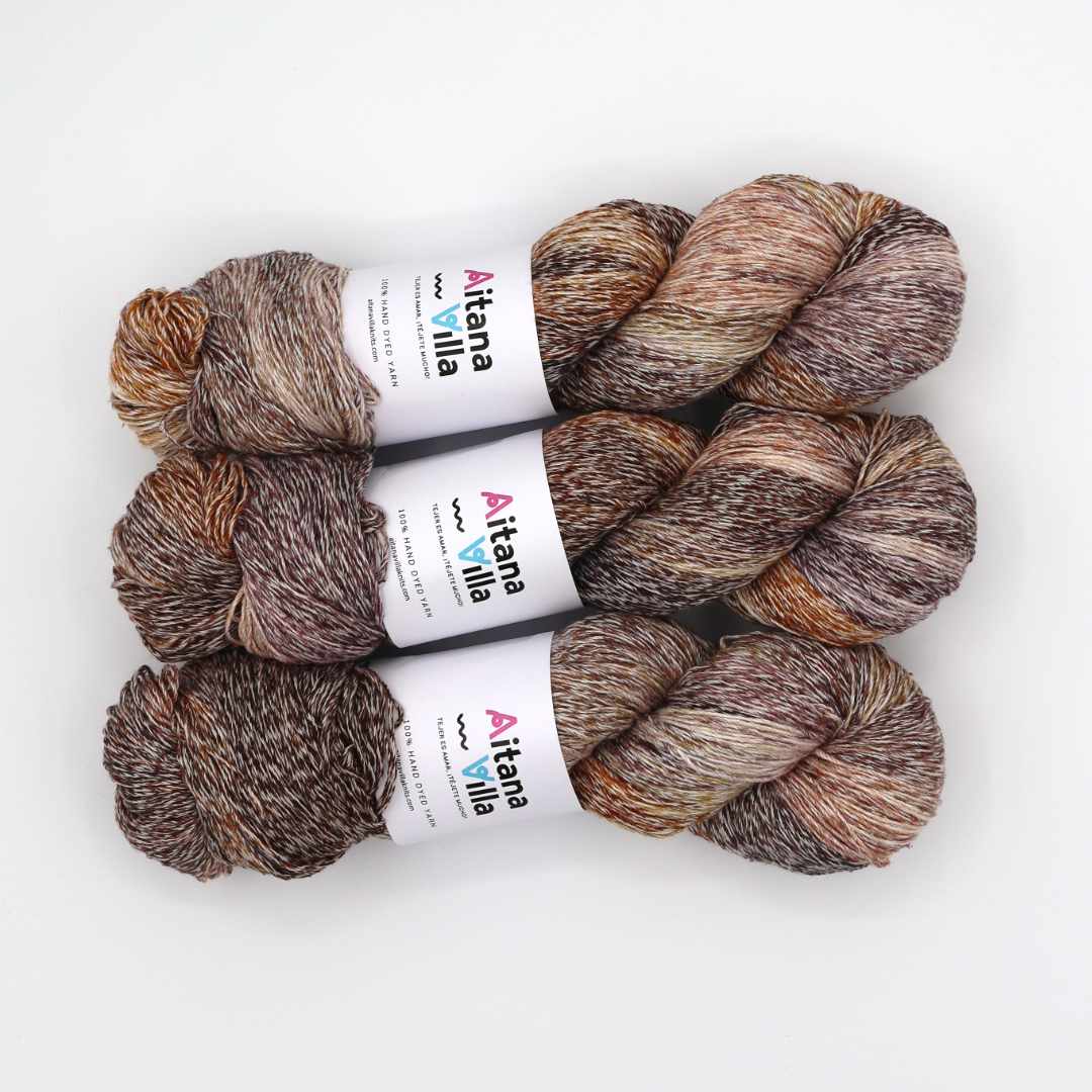 Henrietta se tiñe a mano en lotes pequeños de 2 a 4 madejas. Cada una es única y puede presentar ligeras variaciones de color.