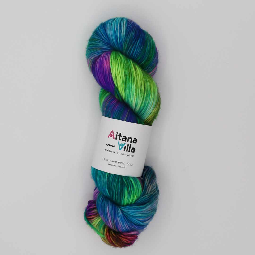 Katherine se tiñe a mano en pequeños lotes de 2 a 4 madejas, lo que aporta carácter único a cada pieza.