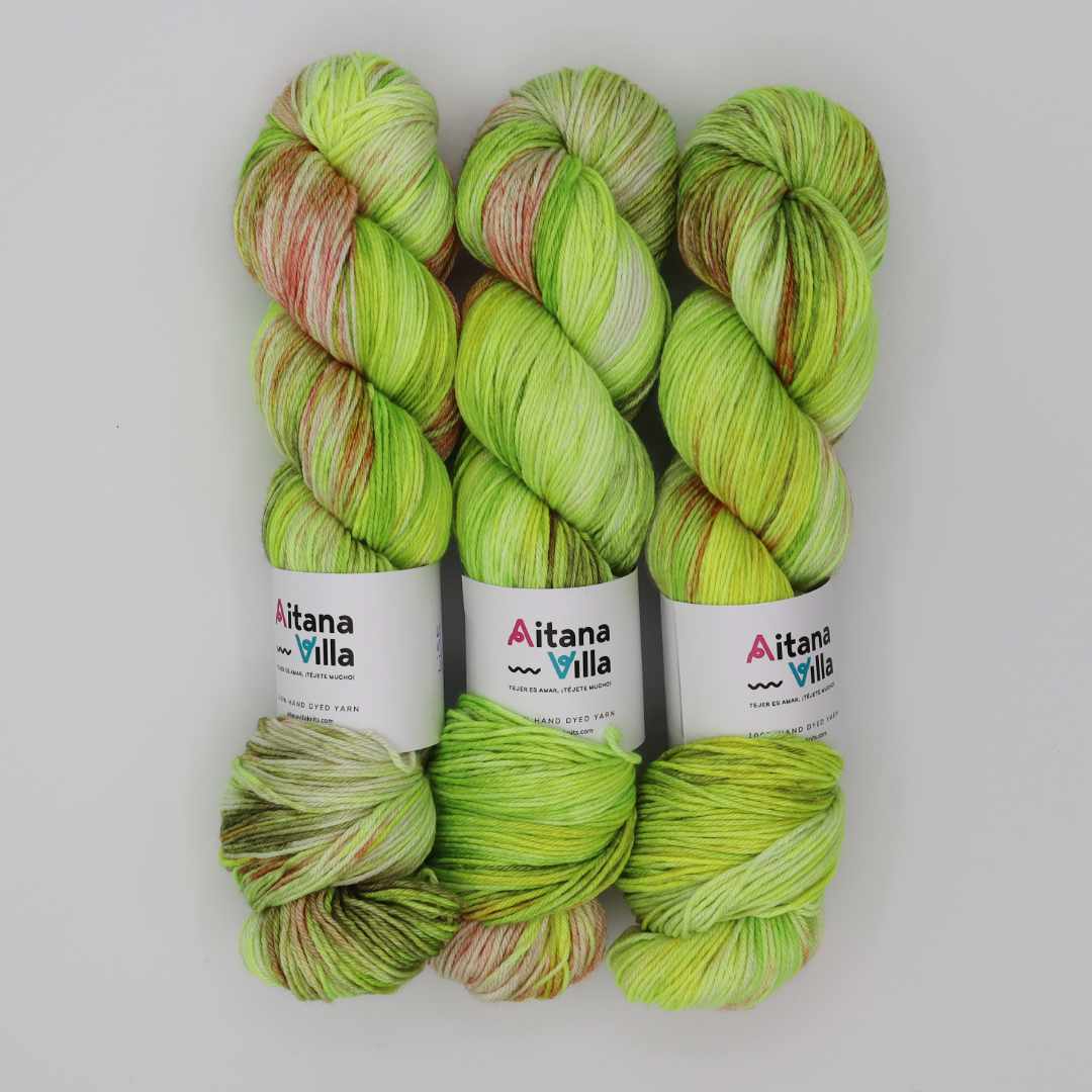 Lise se tiñe a mano en lotes pequeños de 2 a 4 madejas, lo que convierte cada una en única.