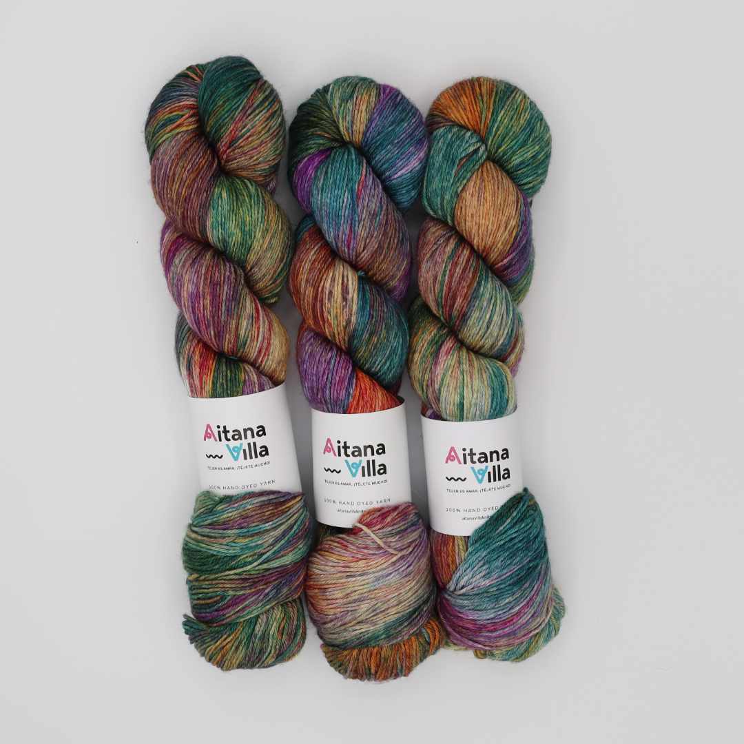 Lise se tiñe a mano en lotes pequeños de 2 a 4 madejas, lo que convierte cada una en única.