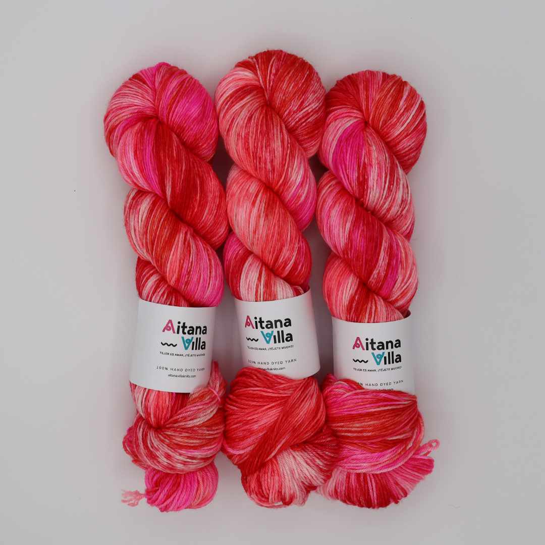 Lise se tiñe a mano en lotes pequeños de 2 a 4 madejas, lo que convierte cada una en única.