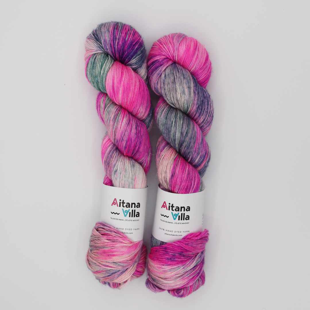 Lise se tiñe a mano en lotes pequeños de 2 a 4 madejas, lo que convierte cada una en única.